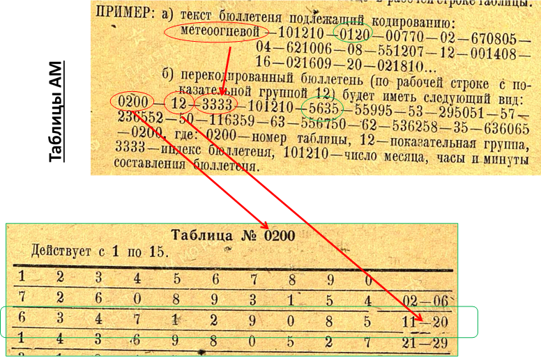 Чаще всего для защиты метеоданных использовали т.н. простую замену. Один из ее вариантов - Таблицы АМ. На фрагментах военных документов приведены сведения об использовании этого способа кодирования.