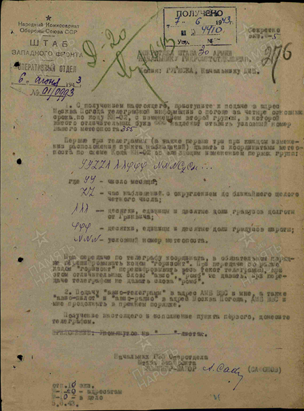Сведения о коде излагаются по документам Западного фронта, хотя по тексту телеграммы код КС-80 должен быть введен в действие по всей территории СССР.