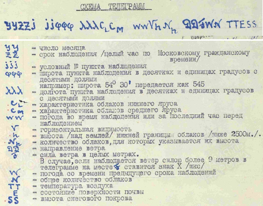 В этой подборке приведены не только погодные коды, их описания, способы применения и кодирования, но и коды для гидрологической информации. Представление о том, какие коды использовались и в каких целях, можно получить из следующего документа.