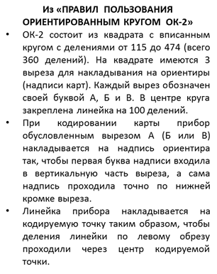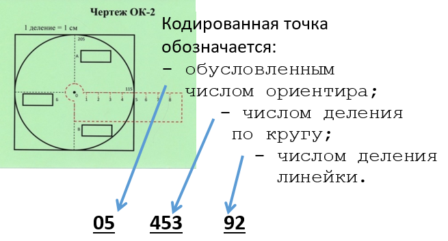 Описания так называемых ориентирных кругов ОК-1 и ОК-2, используемых для кодирования точек на карте.