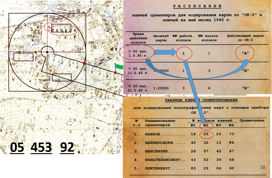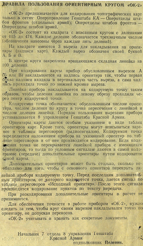 На основании шифртелеграммы Начальника Управления ГШКА с 24.00 8.3.43г в сети Опер Упр. ГШКА-фронтом , кодирование карт по ориентирному кругу "ОК-2" производит с выреза "Б"